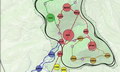 自然线索:通过对山体自身的高程、坡度、坡向的分析,提出针对于山顶、山坡、山脚不同区域的利用方式,包括活动场地、观景台、植物林等;通过山脊线、山谷线的分析,设计游览线路和水体景观;根据游览线路的不同,引入不同的野趣元素,包括野花、野草、野果、野鸟、野营、野游等,为人们营造山林野趣的游乐环境。
