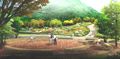 设计方案中将公园的景观结构归纳为:一山、一水、五园。