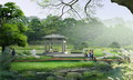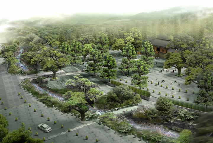 “深山藏古寺,碧溪锁少林。禅宗传中华,武艺名天下”。设计首先是综合整治,通过恢复水系的自然生态系统,实现景观的再自然化,形成集水库、湖泊、溪流、泉水、山涧、瀑布等丰富水体形态以及种类繁多、结构稳定的植物群落等景观资源于一体的河道景观。其次是保留浓厚的历史文化,并且通过合理设置服务游览设施,形成完善的公园游赏体系。设计的理念也是主要体现出“源”、“禅”、“武”三个方面的内涵,即自然景观与禅武历史文化相结合的主题