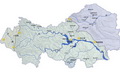 水系特征: 1、流向多自西向东 2、河流均为时令河 3、山区多溪涧瀑布 4、宽阔的水面 5、河流易造成灾害