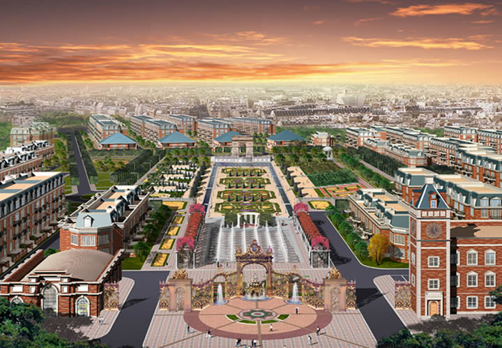 在这里,设计师们把空间作为一个大舞台来处理并展现法国园林艺术的,整个花园以向心的结构形成强烈的中心感,以法式造园要素及其处理手法,凝造法国传统的园林气息。主线两边的斜坡上,是与生活相关的园林;果园、花卉园、药草园等展现法国农业生产方面的主题;下面是表现法国的文化艺术主题的舞台。