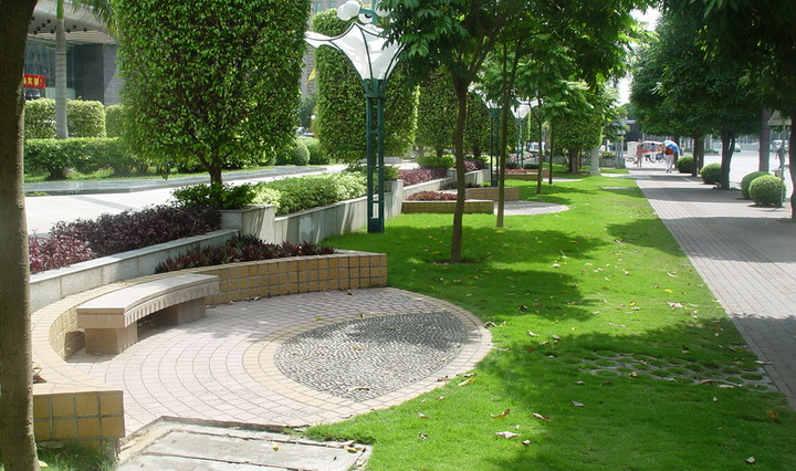 民族大道是南宁市示范街景观改造工程之一,是联系市中心与城市东部公路交通的枢纽干道,规划红线宽100米,是南宁市最重要的景观式道路。根据分析把民族大道定位为公园式景观道路,侧重于处理两侧人行道景观、带状公园、带状广场,将景观尽可能向两侧延伸。民族大道应作为景观通道将城市的河流、湖泊、地平线等各种自然要素与建筑、广场、天际线等人工要素纳入街道空间而联系起来。