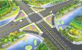 绿化背景空间:在微地形外侧种植纵向高大的植物,借助微地形的高度增大背景林高度,从而营造道路的围合空间,并形成连续的背景绿色景观。