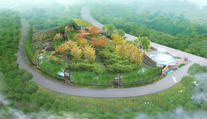第三,在文化艺术方面,温州历史上以手工业发达著称,是青瓷发源地之一,古为瓯地。设计着重在园区主入口广场体现“瓯器“的主题,入口圆形围合景墙设计仿造古人制陶的窑洞的造型,立面上采用混凝土浇筑外贴陶片形式,在广场中心设置雾喷,再现古人烧陶的场景。温州是中国山水诗的发祥地,谢灵运是山水诗的鼻祖,温州园设计希望将山水诗艺术引入造园,用山水诗、山水画寄情于山水,表达追求超脱与自然协调共生的思想和意境。